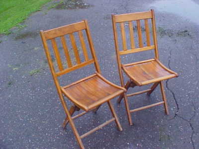 Title (ebay affiliate link): Two Nice Antique Wood Slat Folding Chairs Furniture