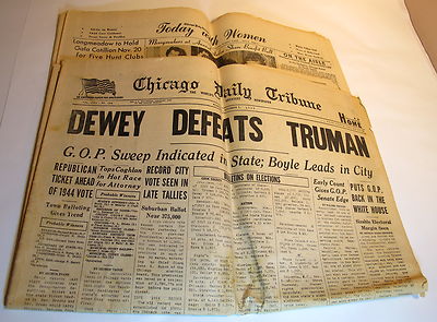 Title (ebay affiliate link): Original DEWEY DEFEATS TRUMAN Nov. 3, 1948, Chicago Tribune Newspaper RARE!