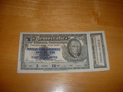 Title (ebay affiliate link): 1936 DEMOCRATIC NATIONAL CONVENTION TICKET JUNE 27 WITH ADMISSION COUPON