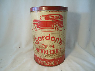 VINTAGE GORDON'S POTATO CHIP TIN TRUCK CAN TIN ADVERTISING CAN