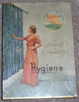 Title (ebay affiliate link): 1930s? Hygiene Shower Curtains Large Beautiful Retail Display Box-LOOK!