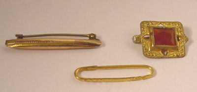 ANTIQUE BABY BAR PIN CARNELIAN GOLD WASH PIN SET 3