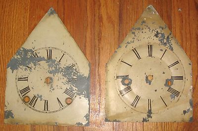 Title (ebay affiliate link): ANTIQUE Cathedral Clock Face Plates (2) Lot Enamel On Zinc