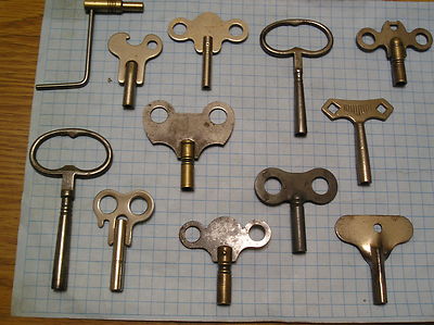 12 ANTIQUE OLD CLOCK KEYS
