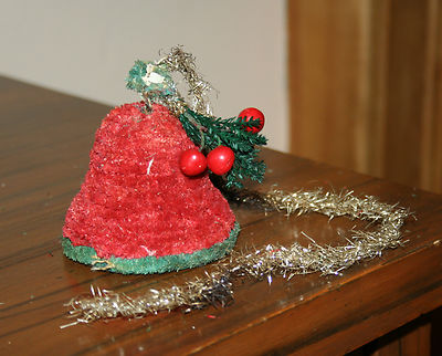 Title (ebay affiliate link): Early 1930s Chenile Red & Green Bell Ornament. Composition Berries. Japan.