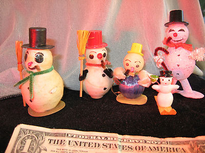 Title (ebay affiliate link): VINTAGE CHRISTMAS COTTON/WOOD SNOWMEN LOT~60S~CUTE DISPLAY~EXCELLENT-JAPAN