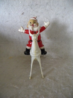 Title (ebay affiliate link): VINTAGE HARD PLASTIC SANTA CANDY HOLDER RIDING DEER-CUTE!