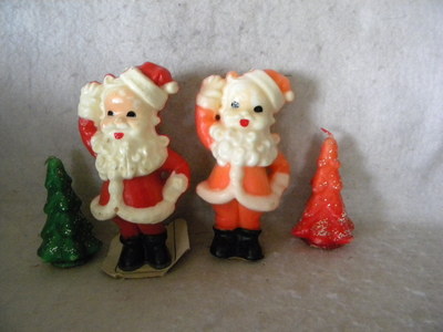 VINTAGE GURLEY SANTA & TREE CANDLES