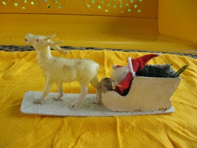 Title (ebay affiliate link): ANTIQUE CLAY FACE SANTA ON SLEIGH WITH REINDEER *SWEET*