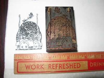 Title (ebay affiliate link): Vintage Santa's Sled Flying Over Roof Tops Wooden Letterpress Printers Block