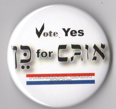 Herman Cain campaign button pin Jewish Hebrew 2012