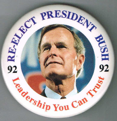 Title (ebay affiliate link): 2 1/2" 1992 RE-ELECT GEORGE BUSH, LEADERSHIP YOU CAN TRUST PIN, BUTTON #918