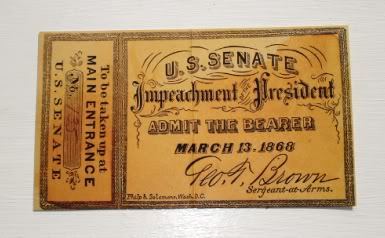 Title (ebay affiliate link): US Senate Ticket Andrew Johnson Impeachment Trial 1868