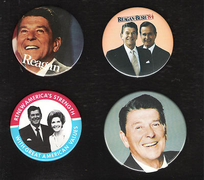 Title (ebay affiliate link): 4 RONALD REAGAN photo button collection: 2 jugates, 1980 and 1984