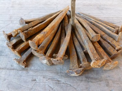 Title (ebay affiliate link): (24) BLACKSMITH HAND FORGED NAILS 18TH CENTURY ORIGINAL ROSEHEADS&BUTTERFLYS