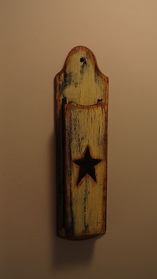 PRIMITIVE WOOD WALL MATCH HOLDER STAR