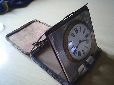 ANTIQUE 1912 SOLID SILVER TRAVELLERS / TRAVEL CLOCK.