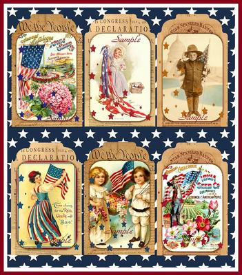 Altered Art Primitive Vintage Patriotic Collage Tags