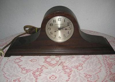 Title (ebay affiliate link): Antique Manning - Bowman Shelf Mantel Electric Clock*Wood Mantel Clock