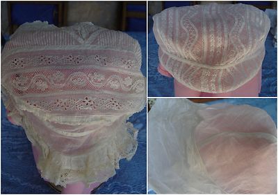 ANTIQUE BABY DOLL BONNETS LOT 3 LACE & EMBROIDERY CRAFTS FRENCH