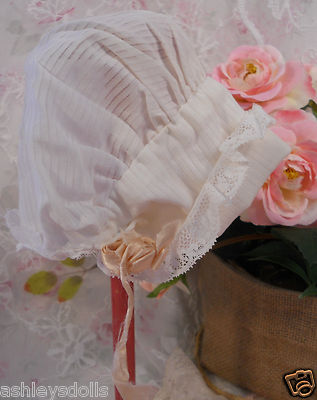 Title (ebay affiliate link): Vintage Doll Bonnet Hat, French Lace and Cotton w Ribbon for Antique Doll