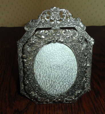 Title (ebay affiliate link): VINTAGE SILVER PLATE ORNATE PICTURE FRAME FOR TABLE OVAL GLASS 3 1/4X2 1/4"