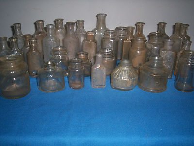 LARGE MIXED LOT 35 ANTIQUE BOTTLES VERY UNIQUE