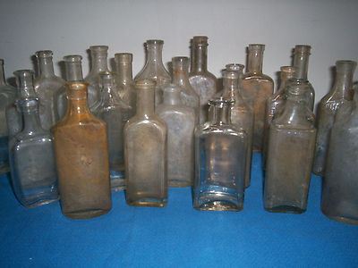 LARGE MIXED LOT 25 ANTIQUE BOTTLES VERY UNIQUE