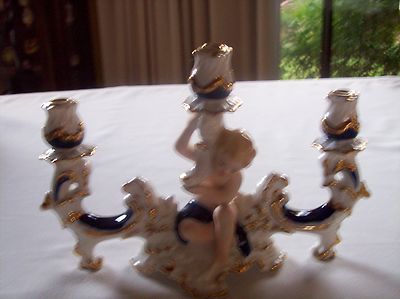 VINTAGE ROMANIAN PUTTI PORCELAIN CANDELABRA -TRIMMED IN GOLD