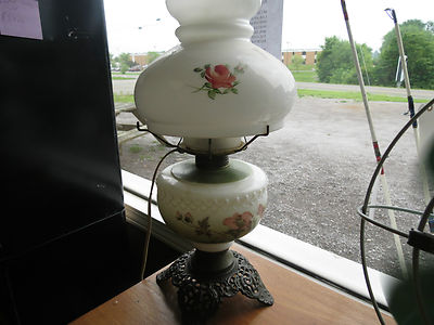 Vintage Handpainted Rose GWTW Lamp with Cast Iron Base
