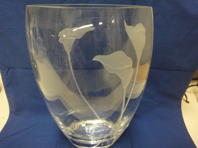 CALLA LILIE ETCHED GLASS OVAL VASE