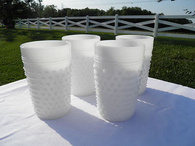 Milk Glass Hobnail Tumblers - Set of 4