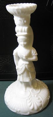 Vintage Milk Glass 8 1/2" Peasant Girl Candlestick No Damage 4 1/2" Base Nice