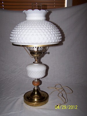 Title (ebay affiliate link): WHITE HOBNAIL MILK GLASS VINTAGE HURRICANE LAMP & SHADE w/CLEAR ALADDIN CHIMNEY