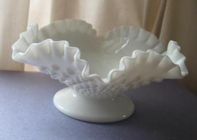 Title (ebay affiliate link): Vintage FENTON White Crimped Ruffled Hobnail Milk Glass Footed Candy Dish