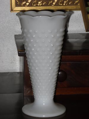 Title (ebay affiliate link): Milk Glass Tall Vase Hobnail Dashes Footed Scallop Ruffle Rim White