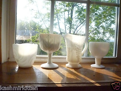 LOT OF VINTAGE MILK GLASS VASES & PITCHER