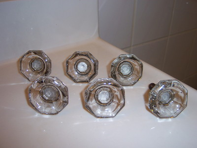 Title (ebay affiliate link): (6) OLD VINTAGE ANTIQUE GLASS & BRASS FURNITURE KNOB PULLS