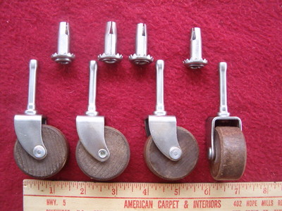 Matched set of 4 Wooden Casters Wheels Vintage Antique Furniture