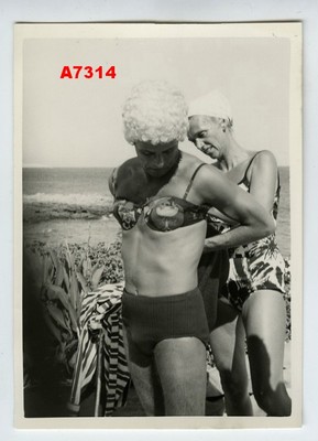 1960s VINTAGE PHOTO FUNNY BEACH MAN IN BRA!