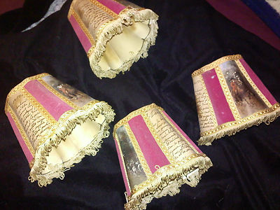 Title (ebay affiliate link): Early 20th C. French Tasseled Lampshades, Set of 4 in Parchment & Gold Braid