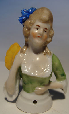 Title (ebay affiliate link): ANTIQUE GERMAN/GERMANY LADY PIN CUSHION DOLL/HALF DOLL~Arms Away*Fan*Hair Bow*