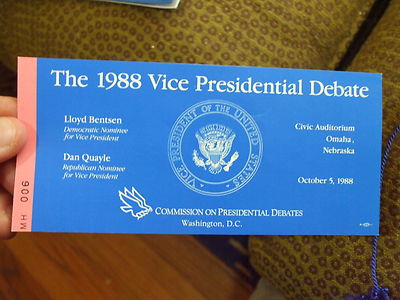 Title (ebay affiliate link): RARE 1988 QUAYLE VS. BENTSEN VICE PRESIDENT PRESIDENTIAL DEBATE TICKET / PASS