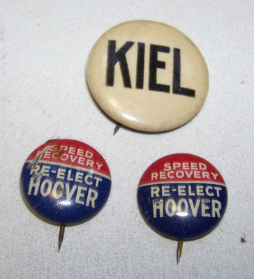 Title (ebay affiliate link): LOT (3) ANTIQUE/VINTAGE COLLECTIBLE PINS (2) RE-ELECT HOOVER (1) KIEL