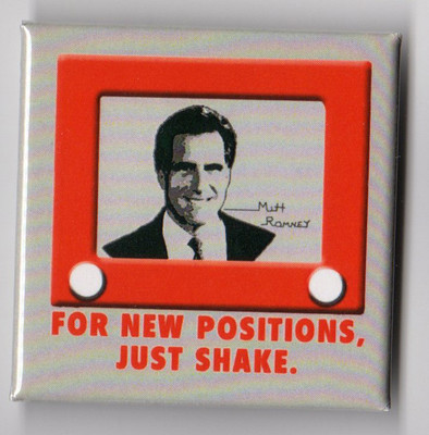 anti- Mitt Romney campaign button pin 2012 Etch-a-Sketch
