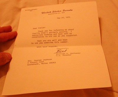 Signed Letter, Sen. Bill Hathaway of Maine