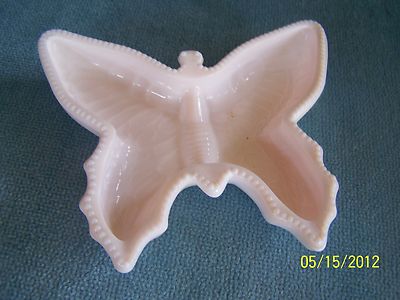 Vintage Shell Pink Milk Glass Butterfly Container Dish