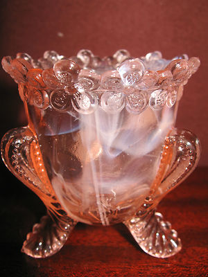 Pink rose milk slag glass tabletop toothpick match holder flowers cranberry boyd