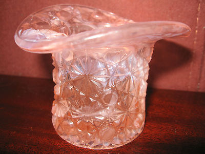 Pink and white milk slag glass tabletop toothpick match holder art top hat boyd