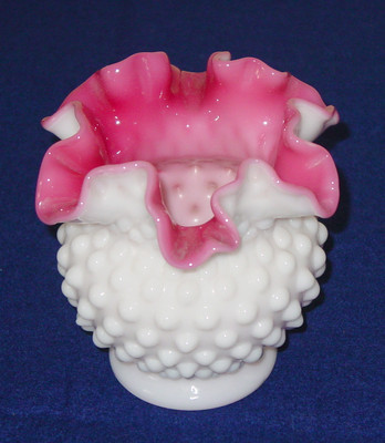 Fenton Hobnail Ruffled Edge Milk Glass with Pink Interior